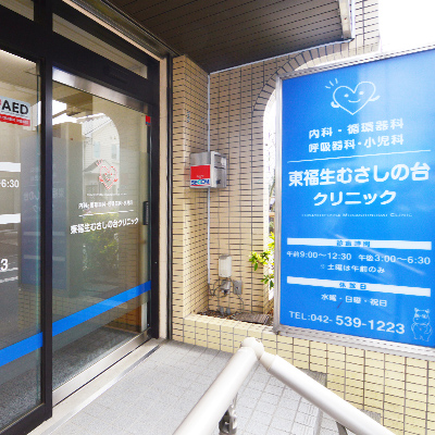 東福生駅前、福生駅からも徒歩10分と通いやすく、立川、拝島などからもご来院いただいています。相談しやすいアットホームな医院です。